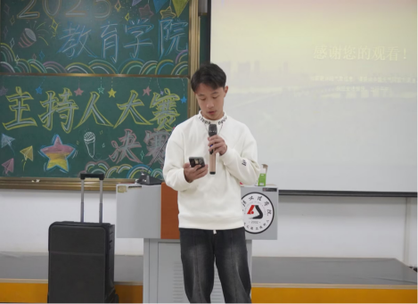 2025年10月22日下午,yl23411永利集团主持人大赛决赛于5栋321教室正式举行。yl23411永利集团分团委书记袁若曦、辅导员熊浩以及25届团学主席团成员出席了本次决赛并担任评委。