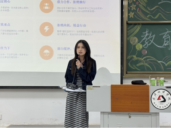 宣讲现场,九位优秀学子代表立足自身成长历程,围绕学业深耕、竞赛比拼、证书备考、学生工作、社会实践与志愿服务等多个维度展开分享。他们结合亲身经历娓娓道来:有人深耕专业学习,拆解考证备考的实用经验,夯实学业根基;有人驰骋各类学科竞赛,在比拼中锤炼本领、突破自我;有人深耕学生工作与集体建设,在责任历练中收获成长蜕变;也有人投身志愿服务与社会实践,在躬身奉献中践行青年担当。整场分享情真意切、内容详实,贴合新生成长发展需求,极具感染力与借鉴意义。
